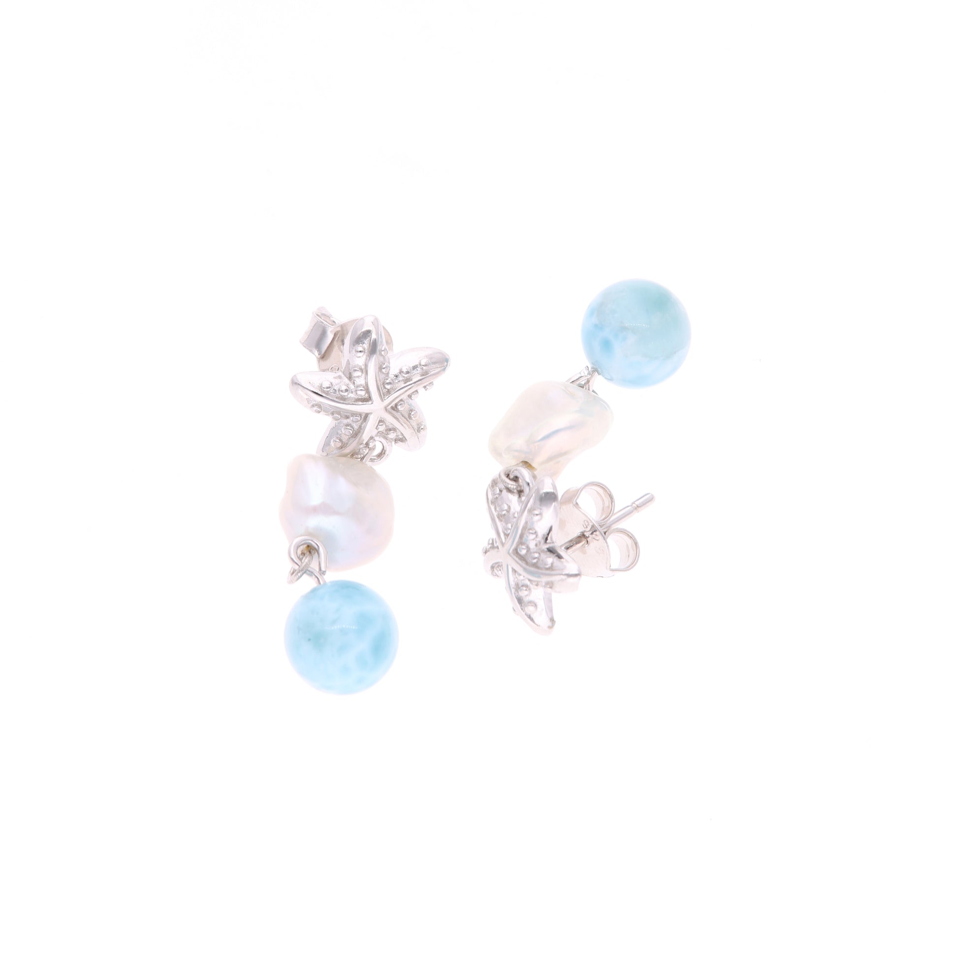 Aretes Perla y Larimar en Plata .925