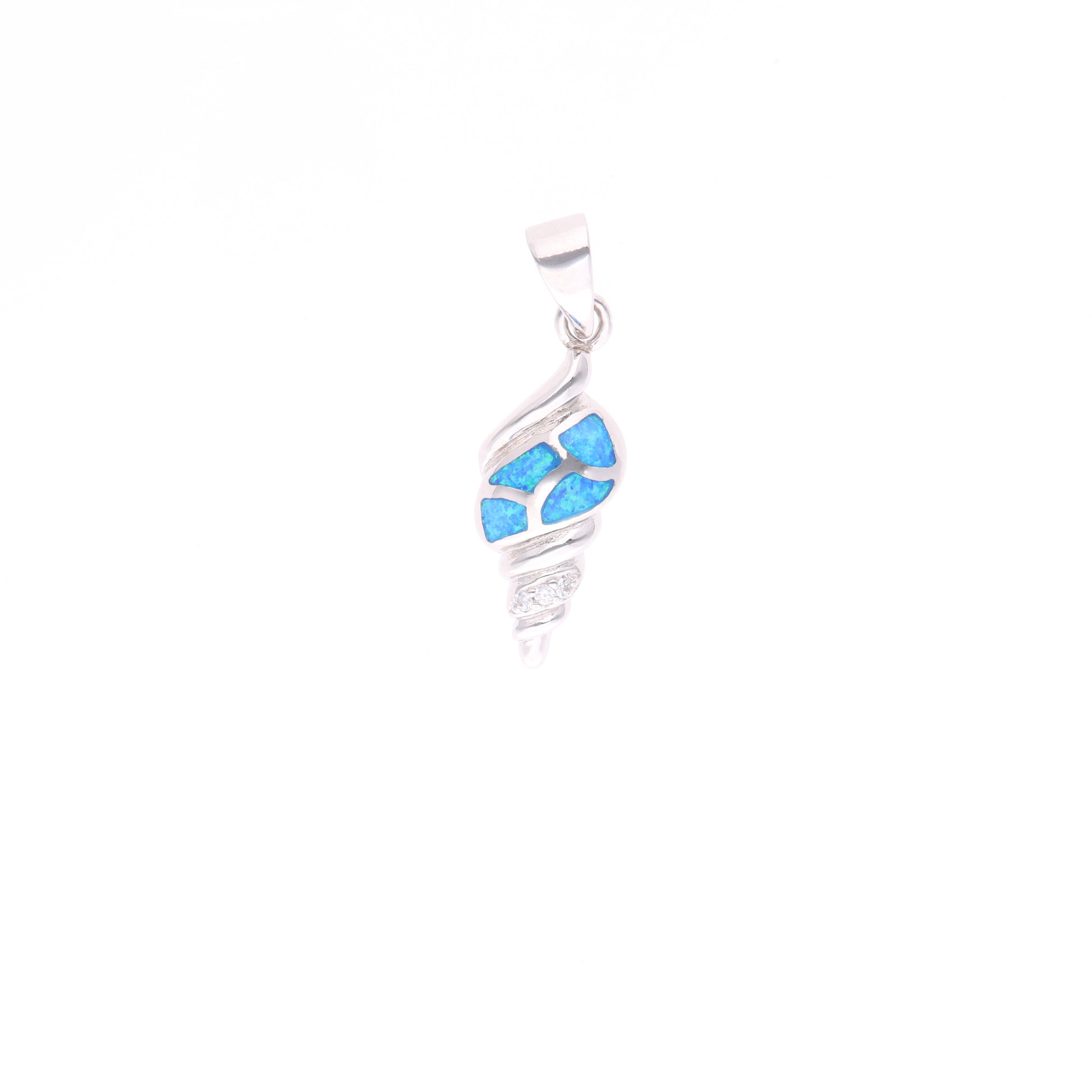 Dije elaborado artesanalmente en plata .925 con diseño de caracol marino decorado con ópalo azul. Su forma espiral simboliza crecimiento y continuidad, convirtiéndolo en una joya con significado y elegancia.