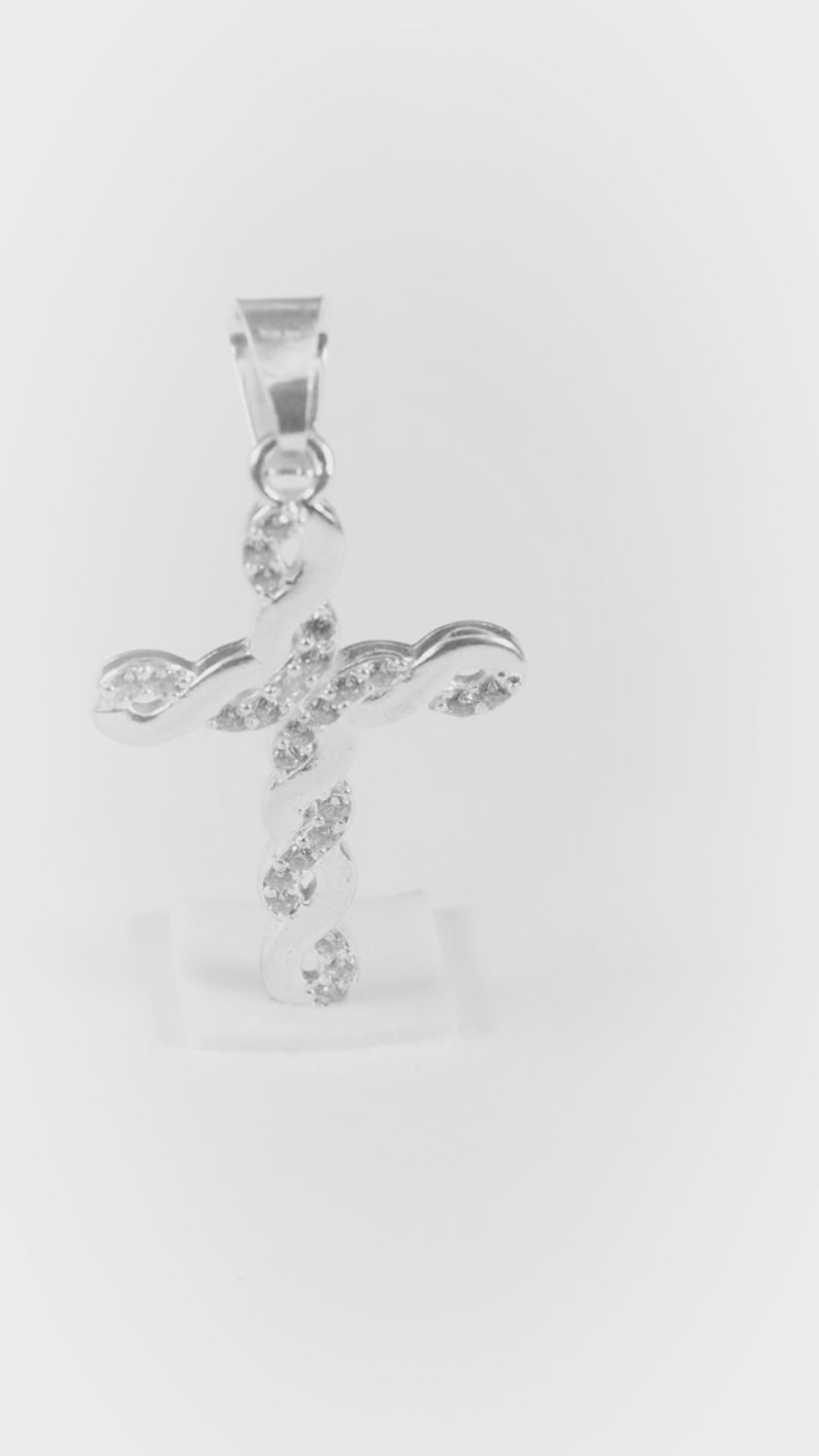 Dije de Plata Ley .925 en Forma Cruz con Topacio blanco Mod. CTDVP018 - Joyería Religiosa