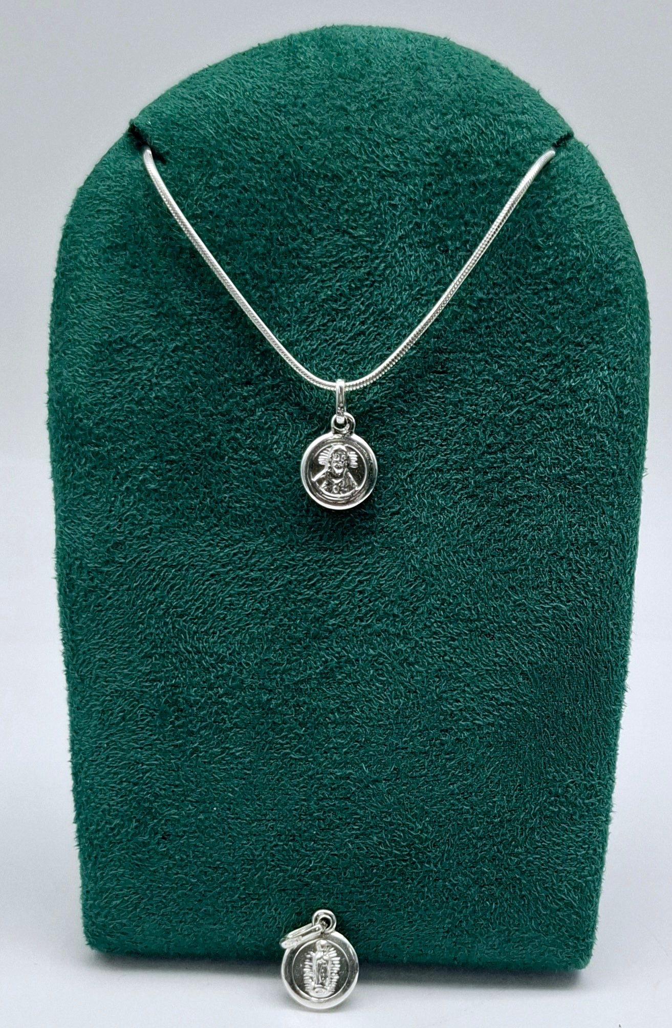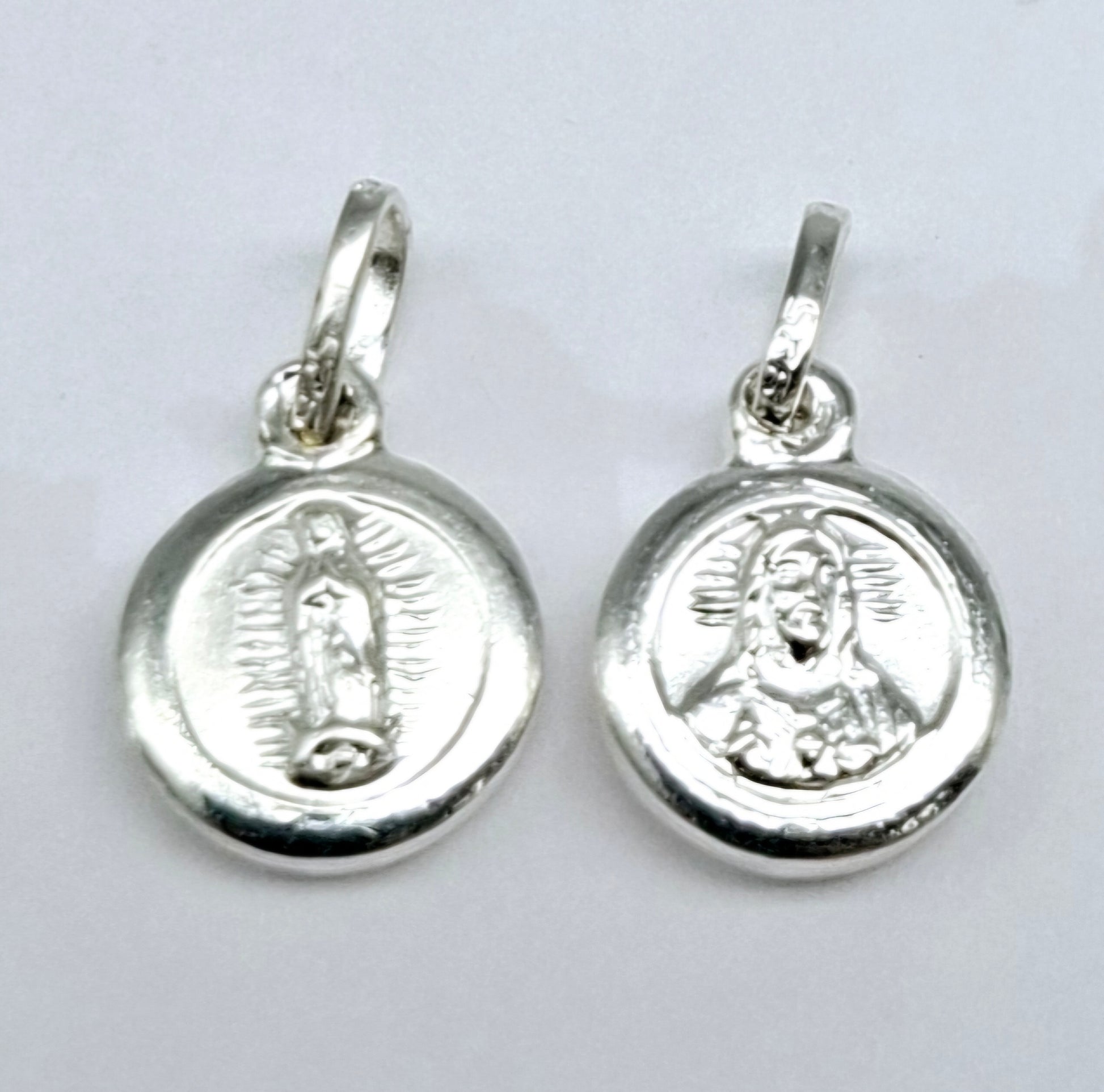 Este Dije de Plata .925 , doble vista Sochapada Virgen de Guadalupe y Sagrado Corazón de Jesús , con un peso de 3.3 gramos, es un accesorio elegante que simboliza la protección maternal y la fe mexicana. Fabricado en plata auténtica con la sagrada imagen de la Virgen de Guadalupe en diseño circular que le da un toque único y devocional, este dije es ideal para quienes buscan una joya que exprese su fe y devoción por la Virgen de Guadalupe, patrona de México y símbolo de esperanza, llevando su protección maternal en el pecho. Cada pieza se vende por separado, ofreciendo un diseño único para cualquier ocasión.
