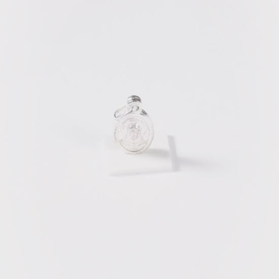 Elaborado artesanalmente en auténtica plata de ley con técnicas de grabado que capturan la esencia de la Virgen de Guadalupe.