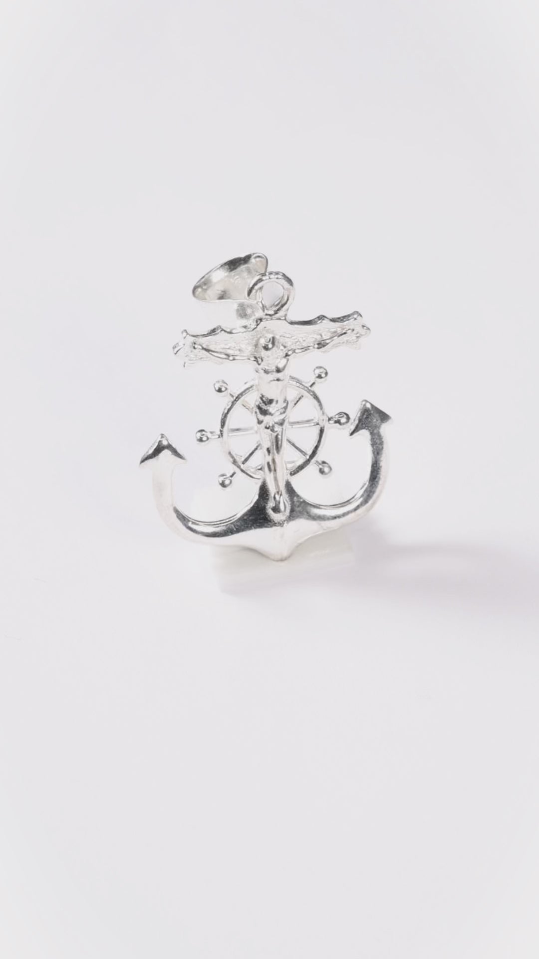 Extraordinaria representación del ancla náutica con cruz cristiana integrada, símbolo universal que fusiona la esperanza marítima con la fe cristiana, elevando la tradición náutica con la espiritualidad divina que evoca tanto la fortaleza de los navegantes como la protección celestial en los mares de la vida. Esta pieza única destaca por su diseño que presenta el ancla náutica con una cruz cristiana meticulosamente integrada en el centro, combinando dos símbolos fundamentales que representan tanto la estabilidad y esperanza del ancla como la fe, salvación y protección divina de la cruz, creando una representación completa de la navegación espiritual y la seguridad tanto terrenal como celestial. La fusión de estos símbolos no solo aporta belleza visual excepcional sino que también simboliza la esperanza inquebrantable guiada por la fe, la estabilidad emocional fortalecida por la espiritualidad, la protección divina en los viajes de la vida y la sabiduría para navegar por los desafíos con la guía celestial, creando una pieza de profundo simbolismo espiritual y marítimo. Es perfecta para quienes buscan una pieza que represente tanto la estabilidad náutica como la fe cristiana, ideal tanto para el uso diario como para ocasiones especiales donde la conexión con el mar y la espiritualidad es valorada. Su diseño equilibrado y simbolismo dual la convierten en una pieza distintiva que mantiene su profundo significado mientras celebra la fusión de tradiciones marítimas y cristianas. Elaborado artesanalmente en auténtica plata de ley con técnicas que requieren precisión excepcional para lograr la integración perfecta del ancla y la cruz.
