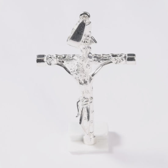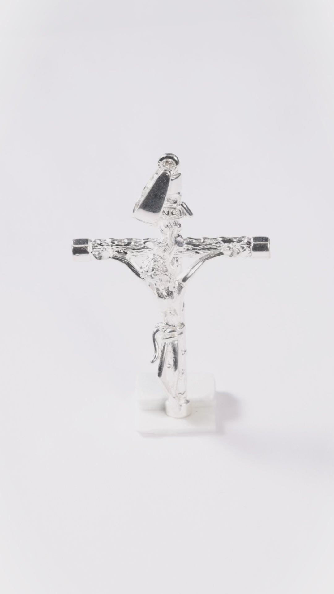 Extraordinaria representación del crucifijo clásico con la figura sagrada de Cristo crucificado, símbolo supremo del cristianismo que evoca el sacrificio redentor, el amor divino incondicional y la esperanza eterna de la salvación. Esta pieza única destaca por su diseño clásico atemporal que presenta la cruz con la figura de Cristo meticulosamente trabajada en cada detalle anatómico y espiritual, desde la expresión serena de su rostro hasta la posición de sus brazos extendidos en gesto de entrega total, creando una representación sagrada que captura la esencia del misterio pascual y la profundidad del amor divino. La figura de Cristo no solo aporta belleza visual excepcional sino que también simboliza el sacrificio supremo por la humanidad, la redención universal, la victoria sobre la muerte y la promesa de vida eterna, creando una pieza de profundo simbolismo religioso y significado espiritual. Es perfecta para quienes buscan una pieza religiosa que represente el corazón mismo de la fe cristiana y deseen llevar consigo el recordatorio constante del amor redentor de Cristo, ideal tanto para la oración diaria como para momentos de reflexión espiritual donde la conexión con el misterio pascual es fundamental. Su diseño sagrado y simbolismo cristológico la convierten en una pieza distintiva que mantiene su profundo significado espiritual mientras honra la tradición cristiana más sagrada. Elaborado artesanalmente en auténtica plata de ley con técnicas que respetan la iconografía cristiana tradicional y honran la representación sagrada de Cristo con precisión devocional excepcional.