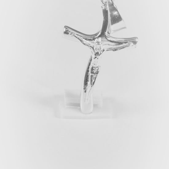 Extraordinaria representación del crucifijo cristiano tradicional con la figura sagrada de Cristo, símbolo universal de fe, amor, sacrificio y redención en su expresión más auténtica y reverente. Esta pieza única destaca por su diseño tradicional que honra siglos de iconografía cristiana, presentando la cruz con la figura detallada de Cristo crucificado elaborada con precisión artesanal que respeta las proporciones y características clásicas de la tradición religiosa. La figura de Cristo está trabajada con detalles anatómicos tradicionales y expresivos que transmiten tanto el sufrimiento redentor como la serenidad divina, creando una pieza de profunda contemplación espiritual que conecta con la tradición milenaria del cristianismo. Es perfecta para quienes buscan la representación más auténtica y tradicional del cristianismo, ideal para la oración, la meditación, las ceremonias religiosas y como recordatorio constante del amor y sacrificio divino. Su tamaño imponente y diseño tradicional la convierten en una pieza de gran presencia espiritual que mantiene su carácter sagrado y reverente. Elaborado artesanalmente en auténtica plata de ley con acabados tradicionales que respetan la iconografía cristiana ancestral y honran la figura sagrada de Cristo en su expresión más pura.